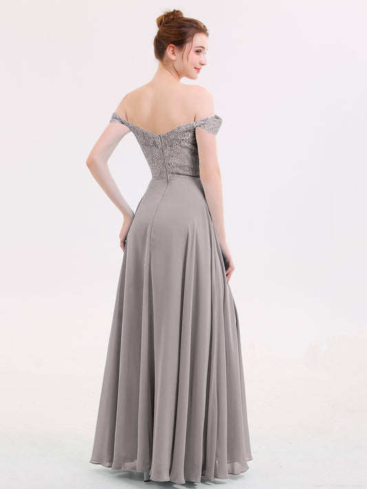 Babaroni LillianLillian Fuera Del Hombro Gasa Y Encaje Imperial Vestido Plata Tallas Grandes