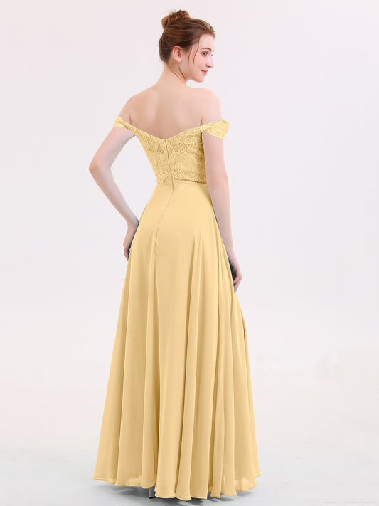 Babaroni LillianLillian Fuera Del Hombro Gasa Y Encaje Imperial Vestido Oro Tallas Grandes