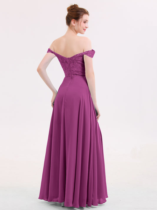 Babaroni LillianLillian Fuera Del Hombro Gasa Y Encaje Imperial Vestido Orquídea Tallas Grandes