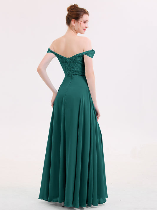 Babaroni LillianLillian Fuera Del Hombro Gasa Y Encaje Imperial Vestido Pavo Real Tallas Grandes