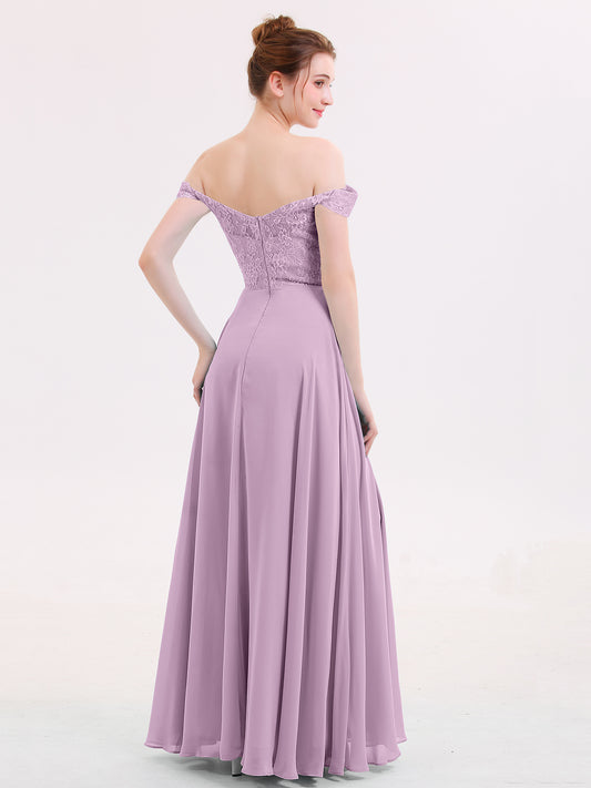 Babaroni LillianLillian Fuera Del Hombro Gasa Y Encaje Imperial Vestido Wisteria