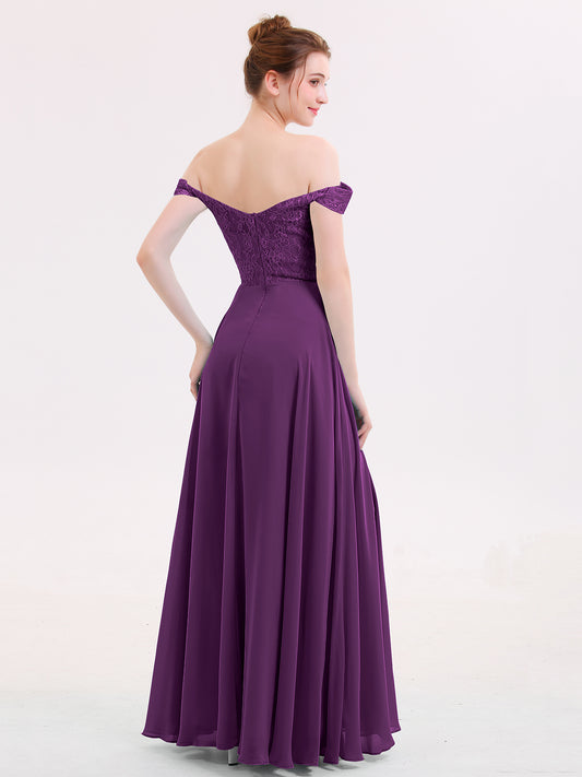 Babaroni LillianLillian Fuera Del Hombro Gasa Y Encaje Imperial Vestido Uva Tallas Grandes