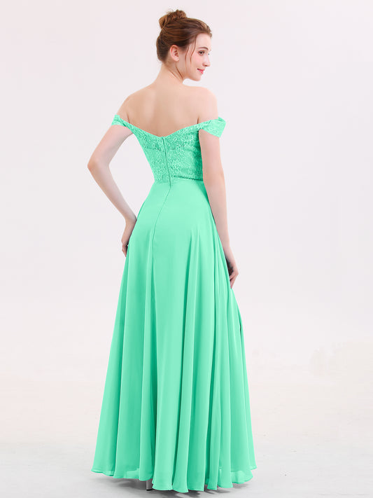 Babaroni LillianLillian Fuera Del Hombro Gasa Y Encaje Imperial Vestido Verde Menta Tallas Grandes