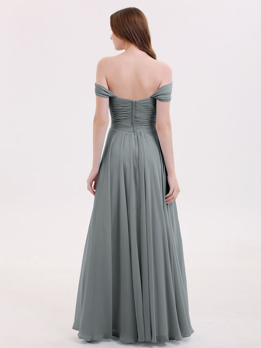 Babaroni LindsayLindsay Fuera Del Hombro Corte Imperial Vestidos De Dama De Honor Gris Acero