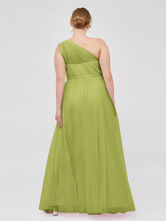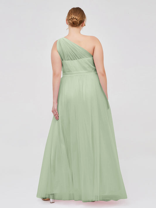 Babaroni AngelinaAngelina Un Hombro Malla Corte De Dama De Honor De Fiesta De Boda Salvia Polvorienta Tallas Grandes