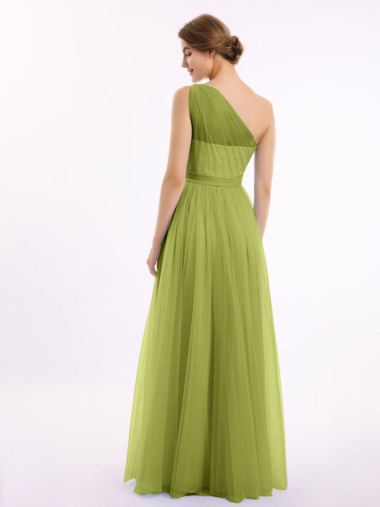 Babaroni AngelinaAngelina Un Hombro Malla Corte De Dama De Honor De Fiesta De Boda Verde
