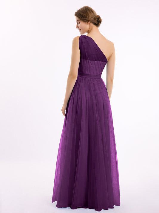 Babaroni AngelinaAngelina Un Hombro Malla Corte De Dama De Honor De Fiesta De Boda Uva