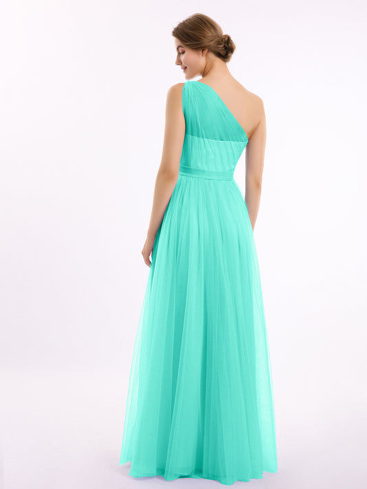 Babaroni AngelinaAngelina Un Hombro Malla Corte De Dama De Honor De Fiesta De Boda Turquesa