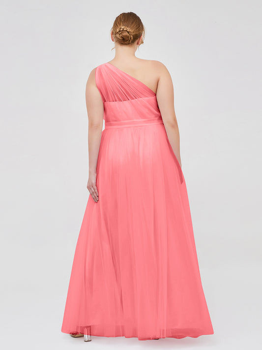 Babaroni AngelinaAngelina Un Hombro Malla Corte De Dama De Honor De Fiesta De Boda Sandía Tallas Grandes