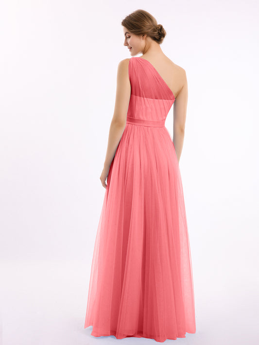 Babaroni AngelinaAngelina Un Hombro Malla Corte De Dama De Honor De Fiesta De Boda Sandía