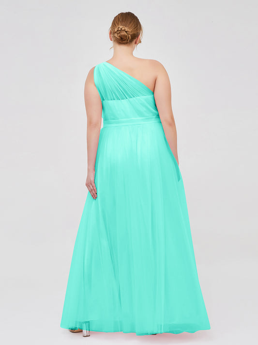 Babaroni AngelinaAngelina Un Hombro Malla Corte De Dama De Honor De Fiesta De Boda Turquesa Tallas Grandes