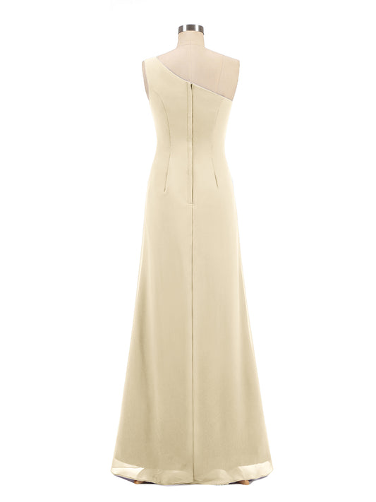 Babaroni LorraineLorraine Un Hombro Gasa Vestido Con Falda En Cascada Champán Tallas Grandes