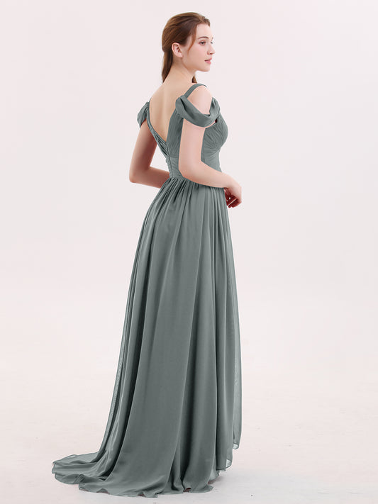 Babaroni LucyLucy Profundo Escote En V Sexy Gasa Vestido Con Apertura Gris Acero Tallas Grandes