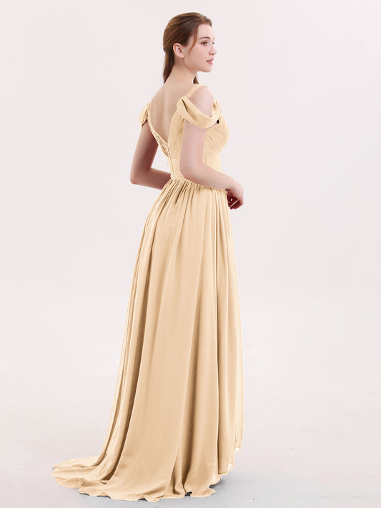 Babaroni LucyLucy Profundo Escote En V Sexy Gasa Vestido Con Apertura Oro Tallas Grandes