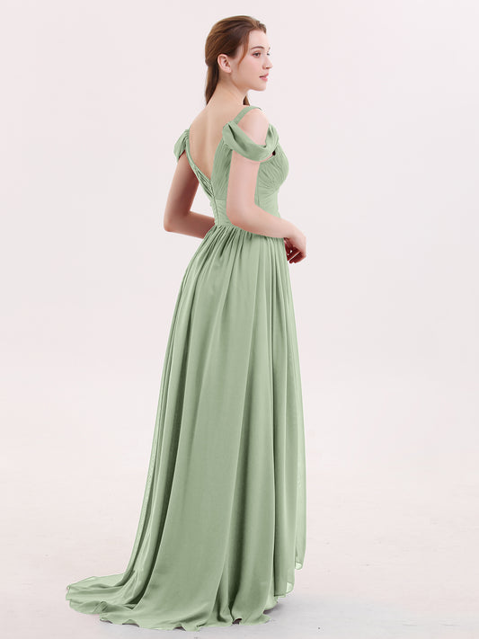 Babaroni LucyLucy Profundo Escote En V Sexy Gasa Vestido Con Apertura Salvia Polvorienta Tallas Grandes