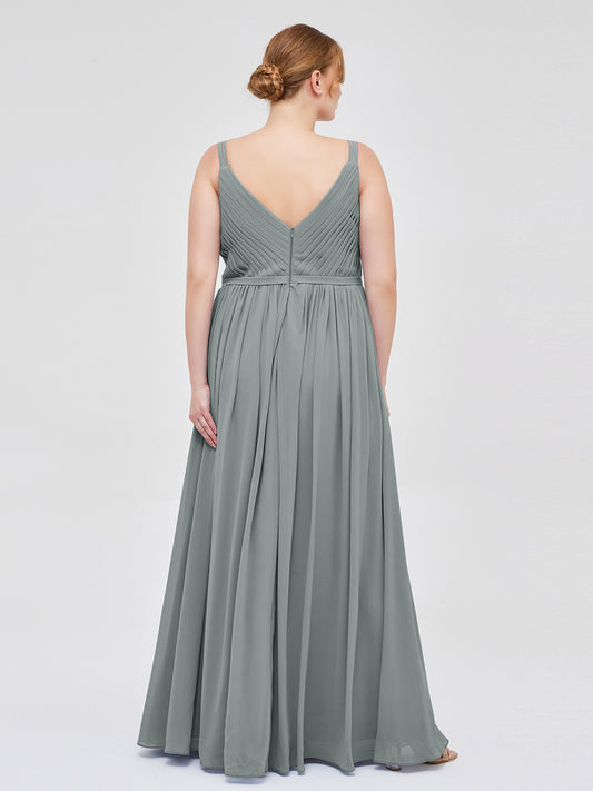 Babaroni AnnabelleAnnabelle Doble Tirantes Gasa Vestidos De Dama De Honor Gris Acero Tallas Grandes