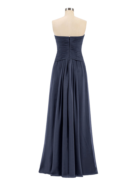 Babaroni MadelineMadeline Sin Tirante Novio Gasa Corte De Dama De Honor Azul Pizarra