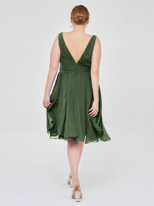 Babaroni MabelMabel Corto Gasa Vestido Con Escote En V Verde Oliva Tallas Grandes