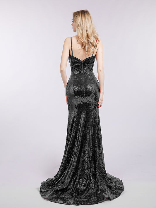Babaroni MadgeMadge Tirante Espagueti Lentejuelas Sirena Vestido Negro Tallas Grandes