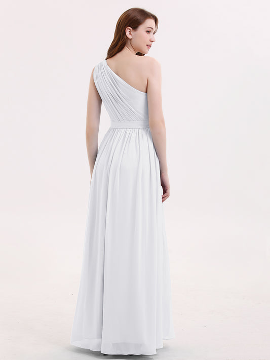 Babaroni MaggieMaggie Un Hombro Gasa Largo Vestido De Dama De Honor Blanco Tallas Grandes