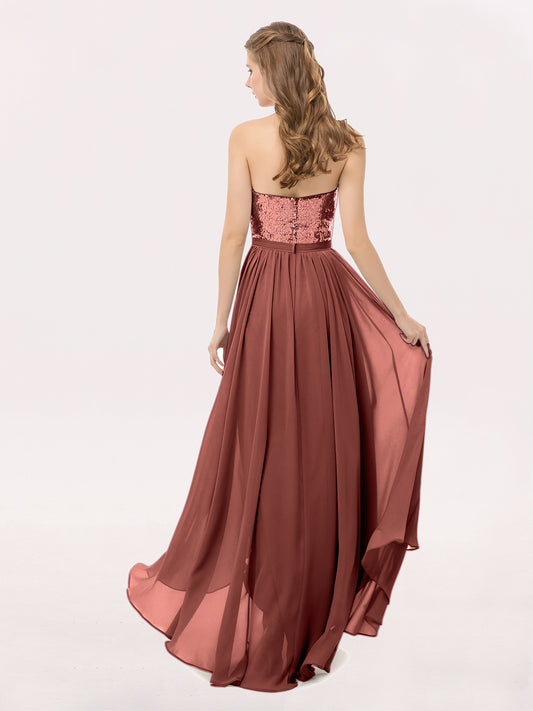 Babaroni MargueriteMarguerite Sin Tirante Vestido Alto Bajo Con Corpino Lentejuelas Terracota Tallas Grandes