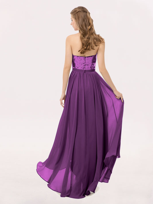 Babaroni MargueriteMarguerite Sin Tirante Vestido Alto Bajo Con Corpino Lentejuelas Uva Tallas Grandes