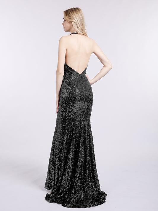 Babaroni MarinaMarina Cabastro Bajo Espalda Lentejuelas Sirena Corte Negro