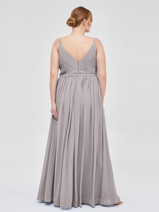 Babaroni AnnabelleAnnabelle Doble Tirantes Gasa Vestidos De Dama De Honor Plata Tallas Grandes