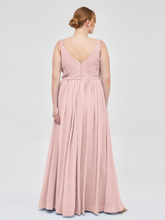 Babaroni AnnabelleAnnabelle Doble Tirantes Gasa Vestidos De Dama De Honor Rosa Polvoriento Tallas Grandes