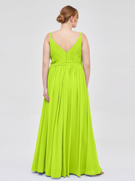 Babaroni AnnabelleAnnabelle Doble Tirantes Gasa Vestidos De Dama De Honor Verde Lima Tallas Grandes