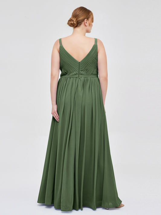 Babaroni AnnabelleAnnabelle Doble Tirantes Gasa Vestidos De Dama De Honor Verde Oliva Tallas Grandes