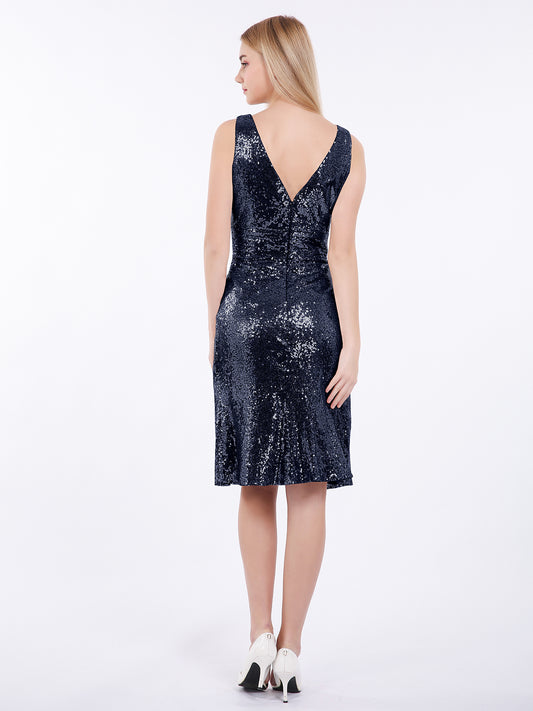Babaroni ArleneArlene Escote En V Corto Lentejuelas Encaje Vestido Azul Marino