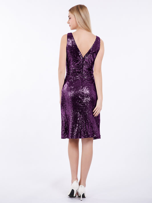 Babaroni ArleneArlene Escote En V Corto Lentejuelas Encaje Vestido Uva Tallas Grandes