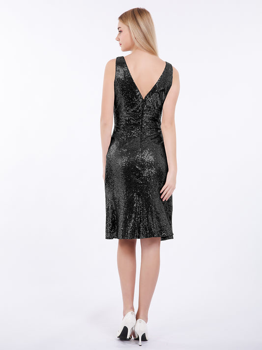 Babaroni ArleneArlene Escote En V Corto Lentejuelas Encaje Vestido Negro Tallas Grandes