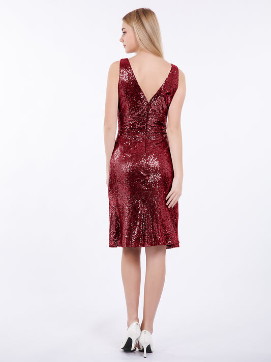 Babaroni ArleneArlene Escote En V Corto Lentejuelas Encaje Vestido Borgoña Tallas Grandes
