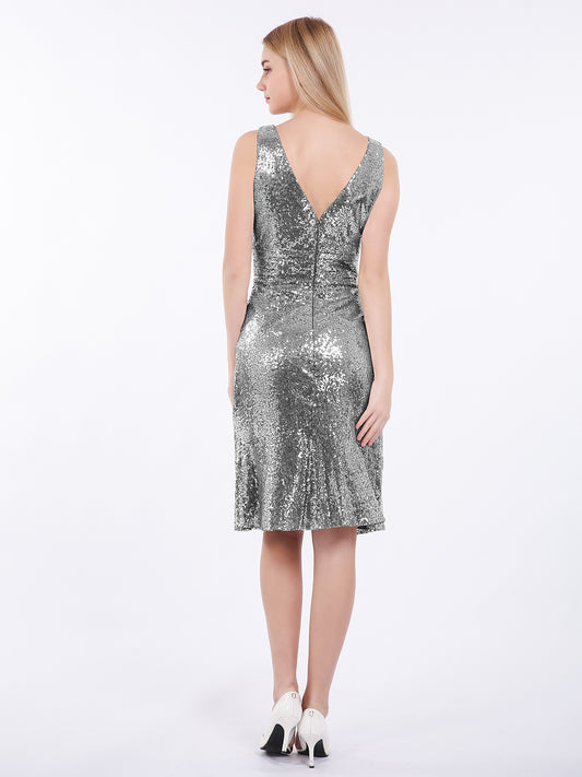 Babaroni ArleneArlene Escote En V Corto Lentejuelas Encaje Vestido Plata Tallas Grandes