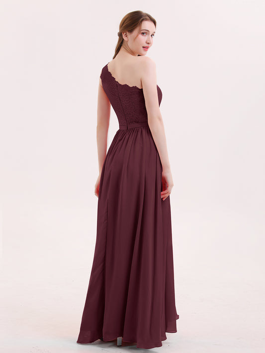Babaroni AudreyAudrey Un Hombro Encaje Y Gasa Vestidos Borgoña
