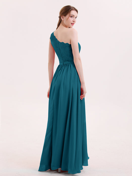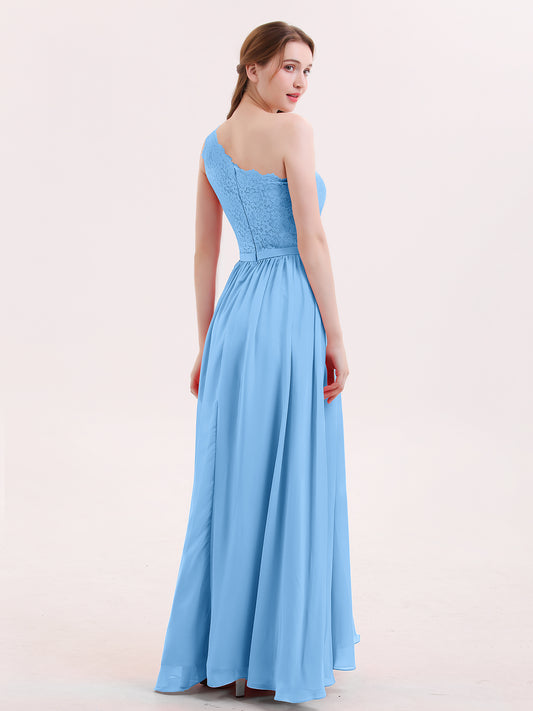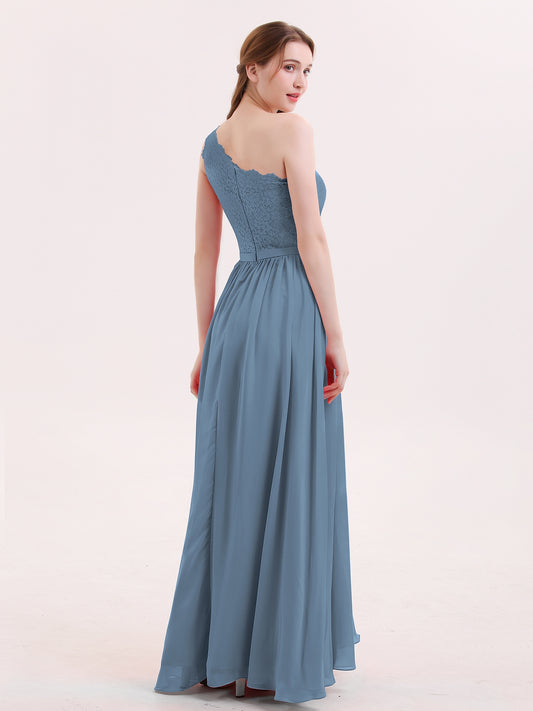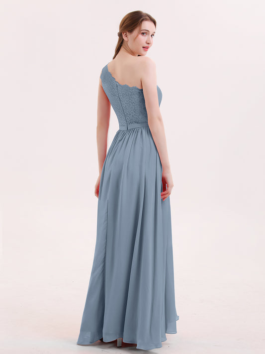 Babaroni AudreyAudrey Un Hombro Encaje Y Gasa Vestidos Azul Polvoriento Tallas Grandes