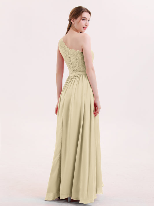 Babaroni AudreyAudrey Un Hombro Encaje Y Gasa Vestidos Champán Tallas Grandes