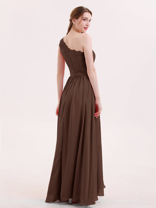 Babaroni AudreyAudrey Un Hombro Encaje Y Gasa Vestidos Chocolate