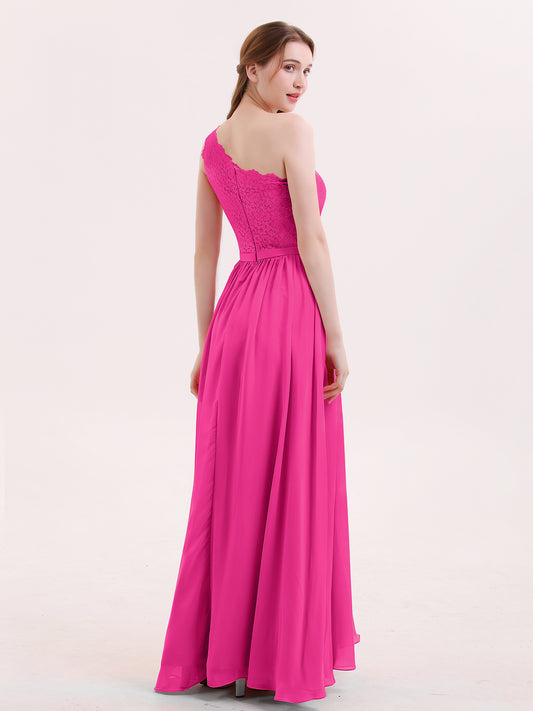 Babaroni AudreyAudrey Un Hombro Encaje Y Gasa Vestidos Fucsia
