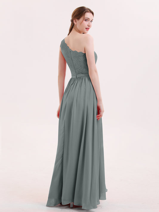 Babaroni AudreyAudrey Un Hombro Encaje Y Gasa Vestidos Gris Acero