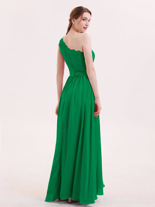 Babaroni AudreyAudrey Un Hombro Encaje Y Gasa Vestidos Esmeralda