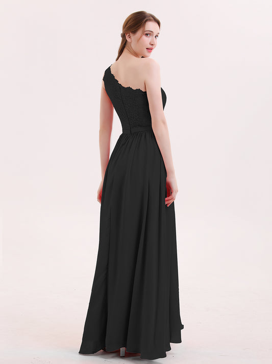 Babaroni AudreyAudrey Un Hombro Encaje Y Gasa Vestidos Negro Tallas Grandes