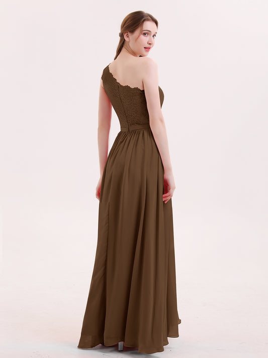 Babaroni AudreyAudrey Un Hombro Encaje Y Gasa Vestidos Marrón