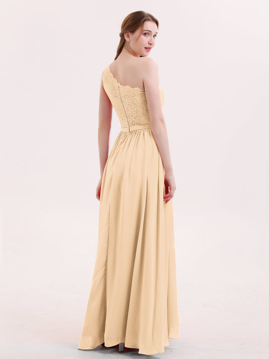 Babaroni AudreyAudrey Un Hombro Encaje Y Gasa Vestidos Melocotón