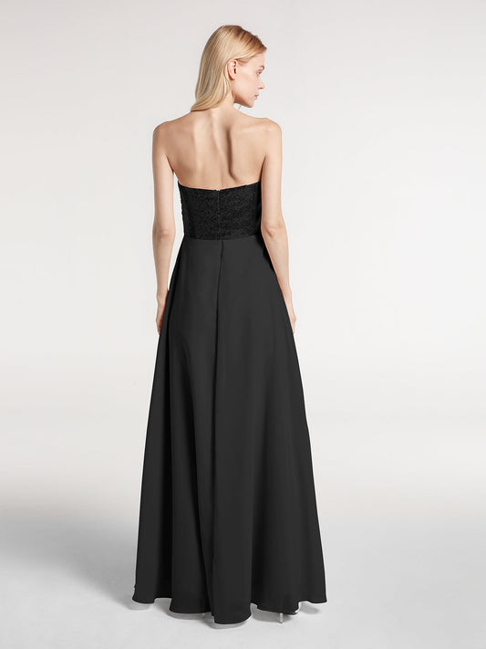 Babaroni XeniaVestido de chiffon con escote en forma de corazón, encaje y lentejuelas en la parte superior Negro Tallas Grandes
