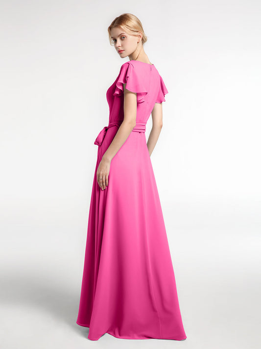 Babaroni VanessaVestido de chiffon con escote en V y mangas cortas con lazo Azalea