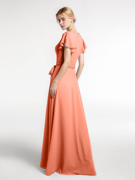 Babaroni VanessaVestido de chiffon con escote en V y mangas cortas con lazo Atardecer