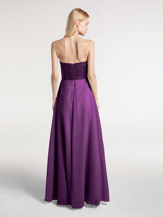 Babaroni XeniaVestido de chiffon con escote en forma de corazón, encaje y lentejuelas en la parte superior Uva
